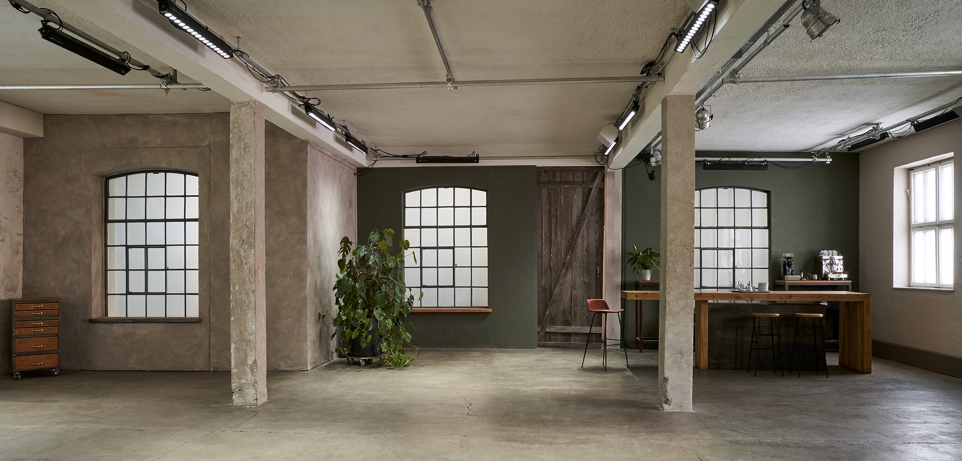 250 m² · Deckenhöhe 3.3 m · Original Industrial Loft · abdunkelbar · 32A & 63A power · Wi-Fi
